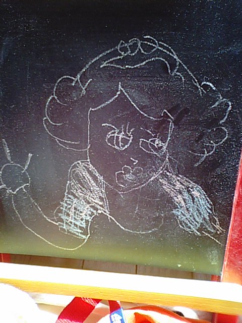 子供部屋にあるちぃちゃい黒板に描き描きしておりました。
