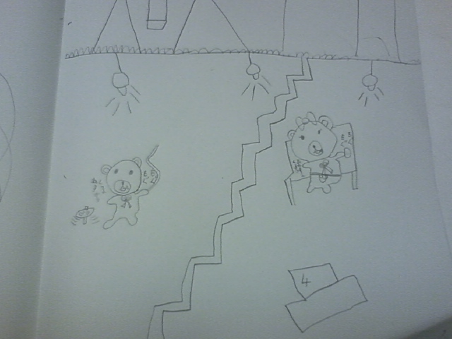 真ん中のビシビシは階段で、右下の4の付いた凸はTVで4チャンネルを見ているそうです。
