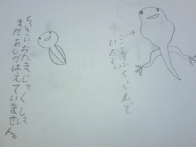 オタマ観察5:カエルになる 画:ひめ画伯