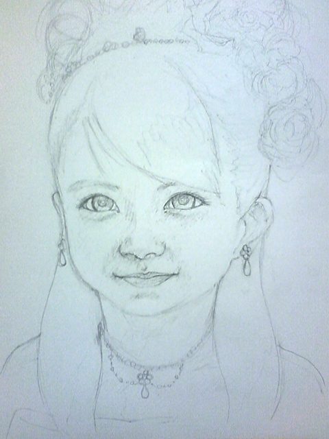 七五三で撮ったいい写真があったので、それを見て描きました。